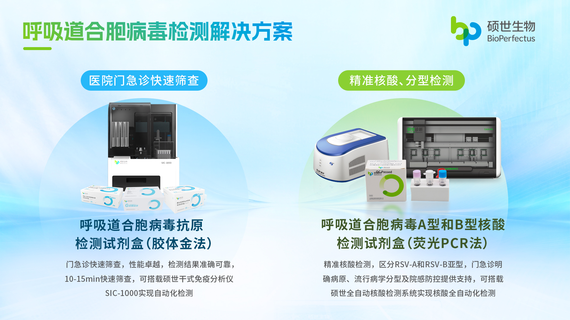 硕世生物呼吸道合胞病毒抗原检测试剂盒(胶体金法)采用双抗夹心,操作简便,15分钟即可出结果,高度契合门、急诊对快速筛查的需求。